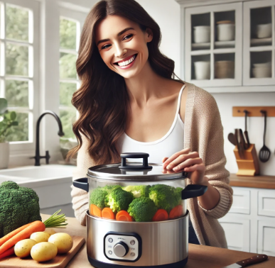 - 마무리: 찐 채소를 그릇에 담고, 소금과 후추로 간을 합니다. 올리브유를 약간 뿌려 맛을 더할 수도 있습니다.