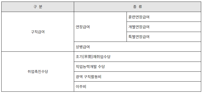 취업촉진수당은 빠른 재취업을 장려하기 위해 지급되는 수당입니다. 주요 항목은 다음과 같습니다.