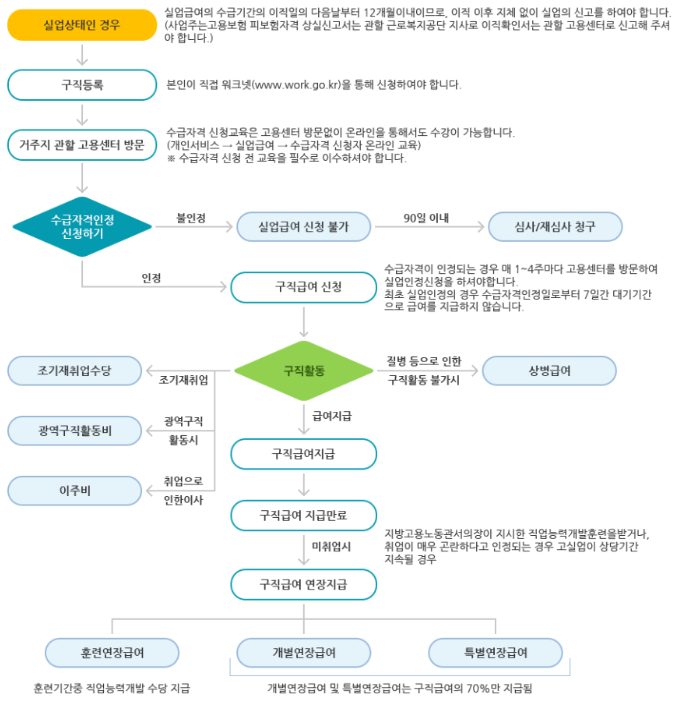 구직급여는 실직 후 재취업을 준비하는 동안 지급됩니다. 필요에 따라 연장이 가능한 구직급여는 다음과 같은 유형이 있습니다.