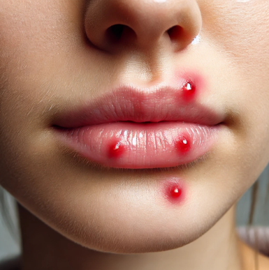 - 단순포진은 헤르페스 바이러스(HSV-1)에 의해 발생하는 질환으로, 입술이나 입 주변에 작은 수포가 군집을 이루며 발생합니다. 이 바이러스는 대부분의 성인에게 잠복하고 있으며, 스트레스, 피로, 면역력 저하 등의 원인으로 재발할 수 있습니다.