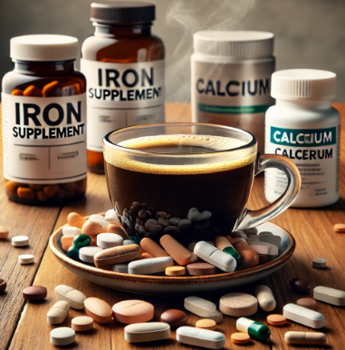칼슘은 뼈 건강에 필수적인 영양소입니다. 하지만 커피 속의 카페인은 소변을 통해 칼슘 배출을 촉진시킬 수 있습니다. 이로 인해 칼슘 보충제를 커피와 함께 섭취하면 칼슘의 효과가 감소할 수 있습니다. 칼슘 보충제도 커피와 함께 섭취하는 것을 피하고, 식사 중에 섭취하는 것이 좋습니다.