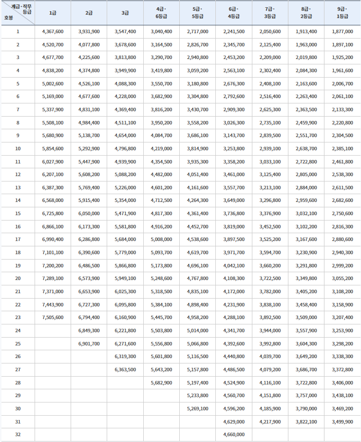 9급 공무원의 기본급 상승은 물가 상승률을 감안하면 여전히 제한적이지만, 5급 이상의 고위직에서도 3% 인상이 동일하게 적용됩니다.